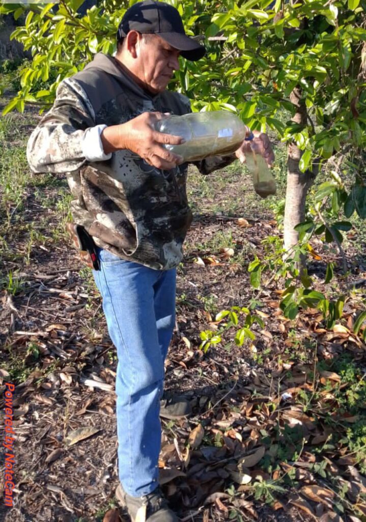Sujetos de derecho del programa Sembrando Vida continúan con las acciones de trampeo contra la mosca del gusano barrenador