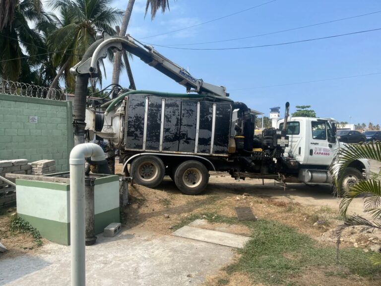 En labores de mantenimiento preventivo, la Comisión de Agua Potable, Alcantarillado y Saneamiento del Estado de Guerrero (CAPASEG) realizó trabajos de desazolve en la fosa séptica de la Base Aérea Militar No. 7, ubicada en Pie de la Cuesta, en el municipio de Acapulco.